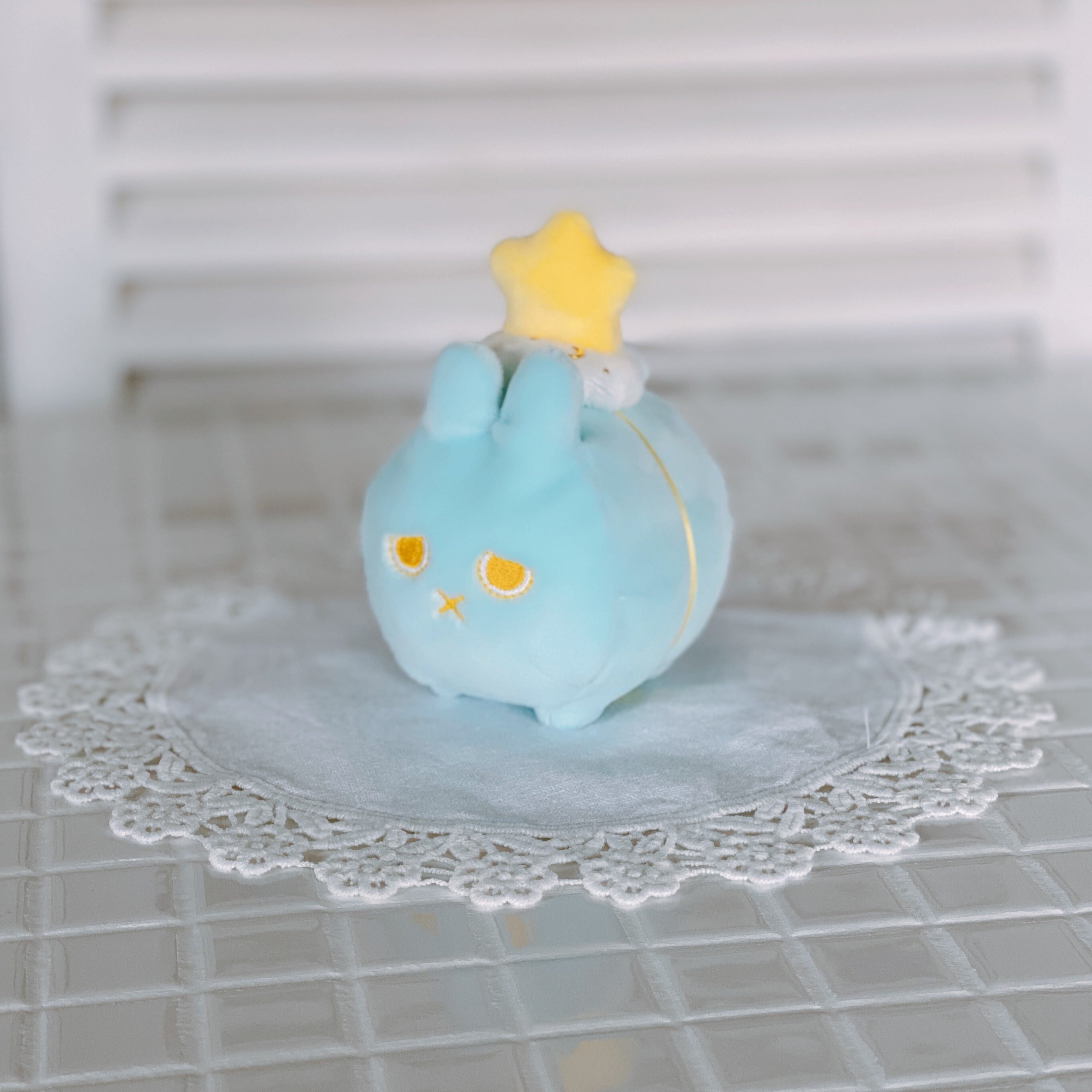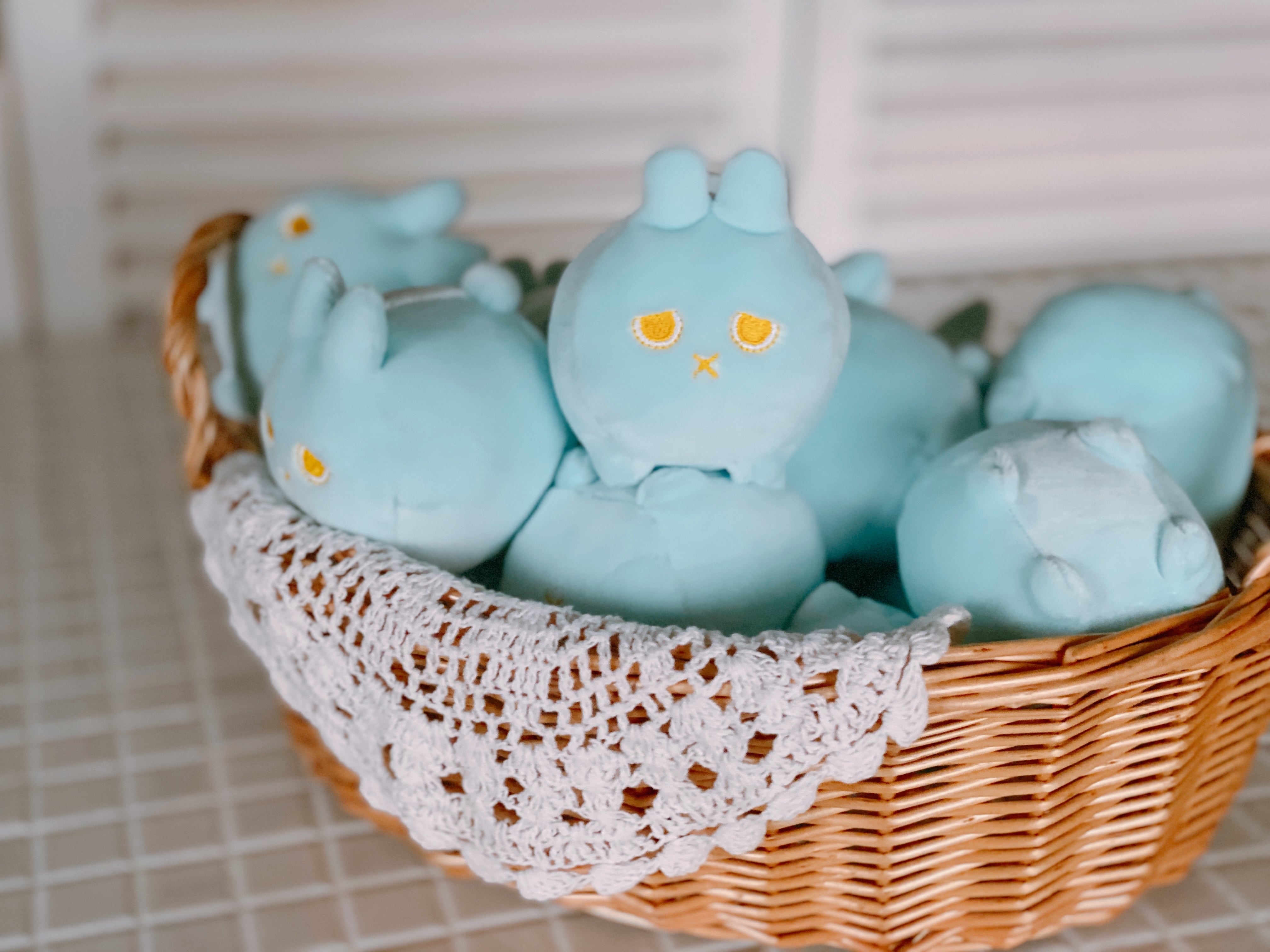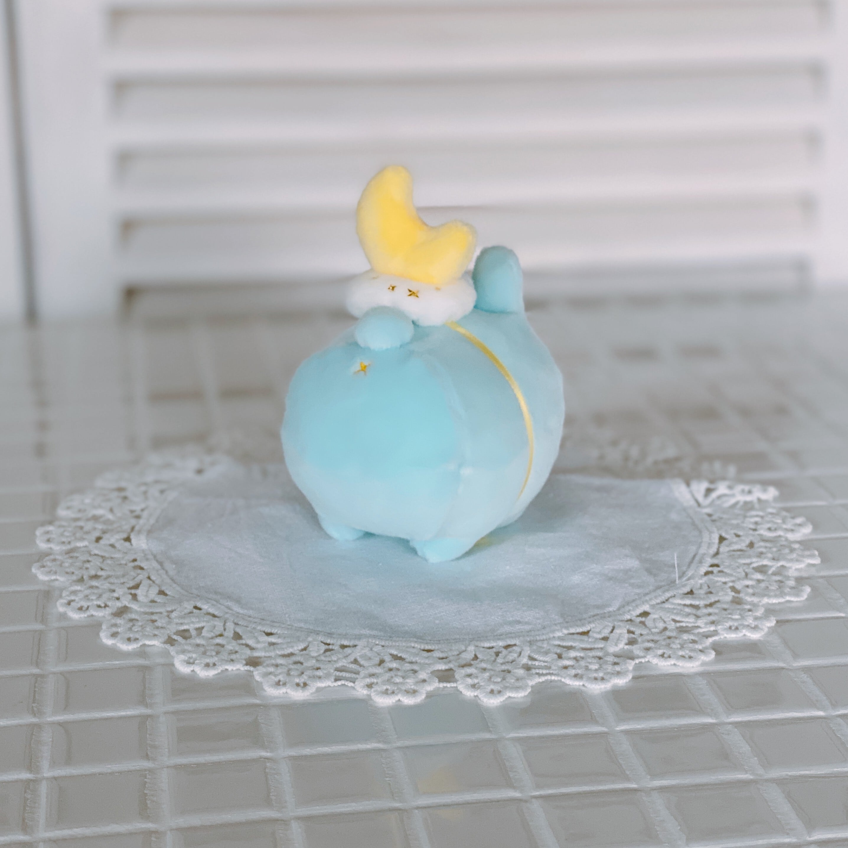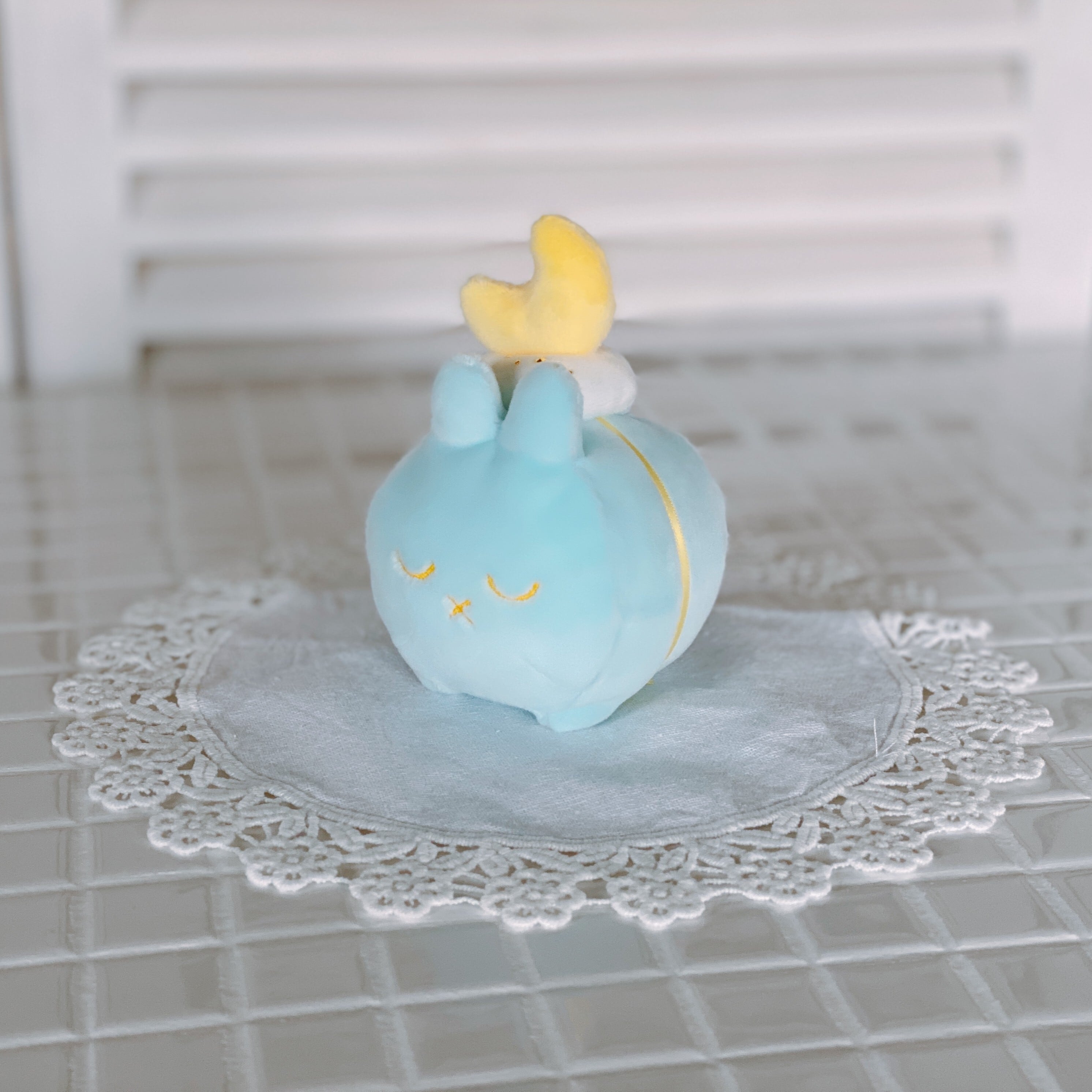 優しい水色の小さいウサギです。