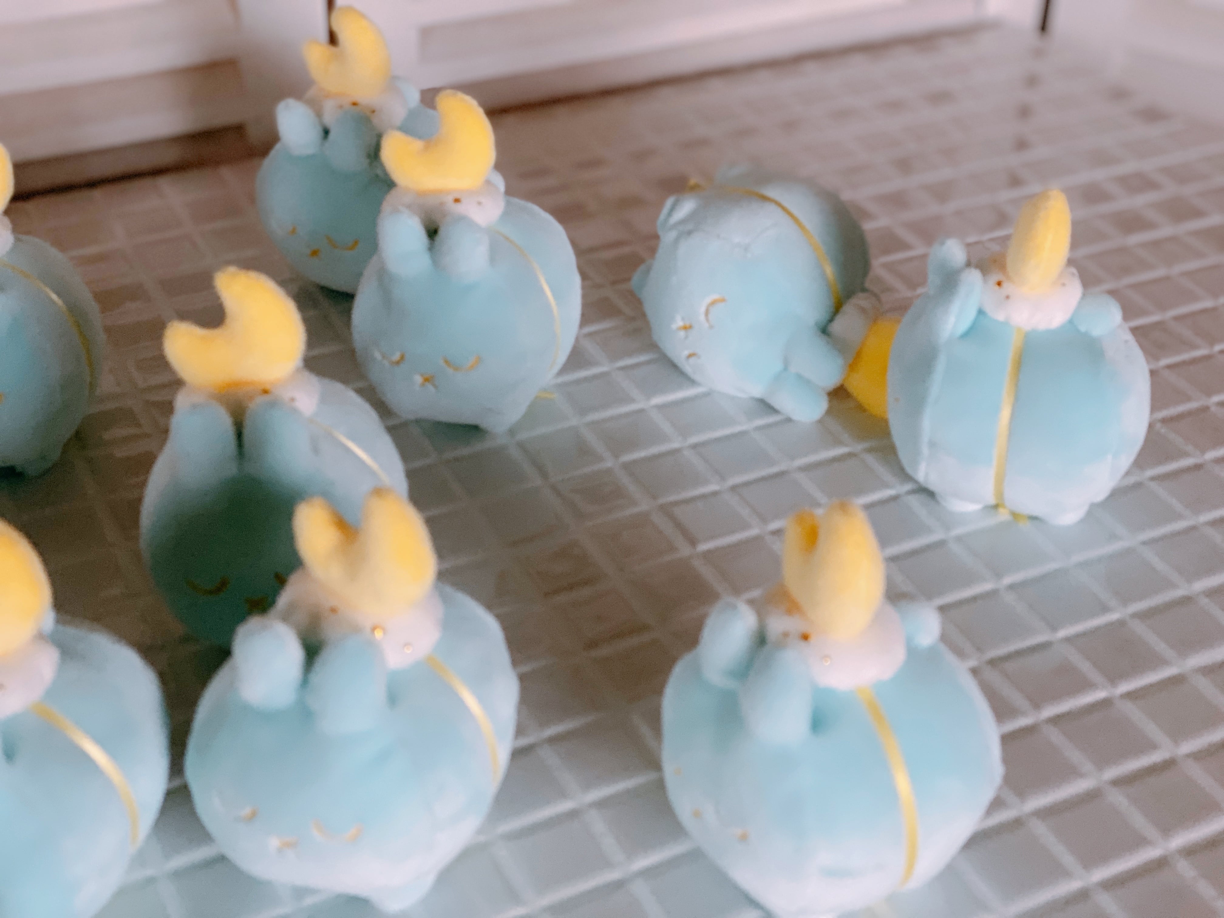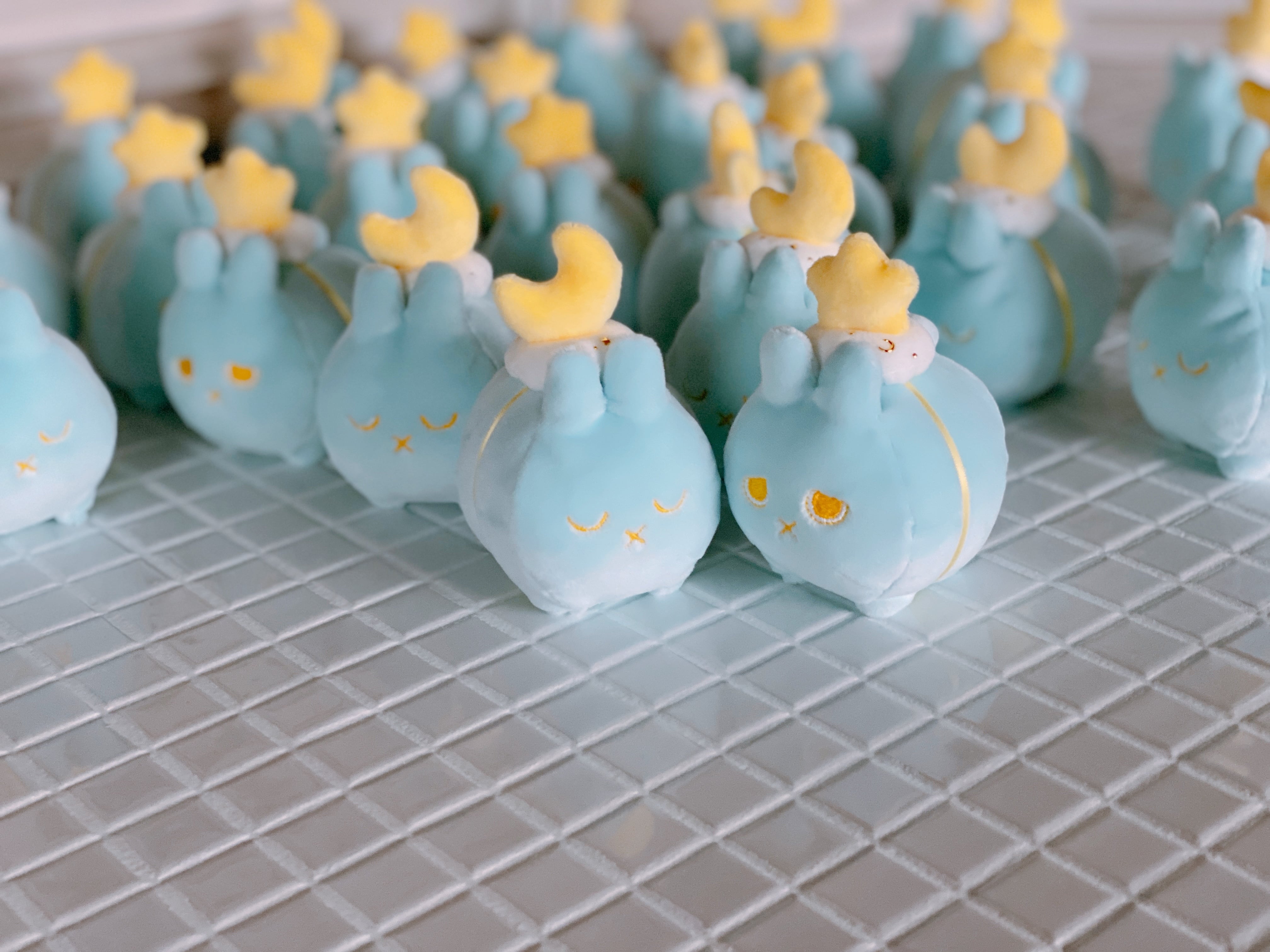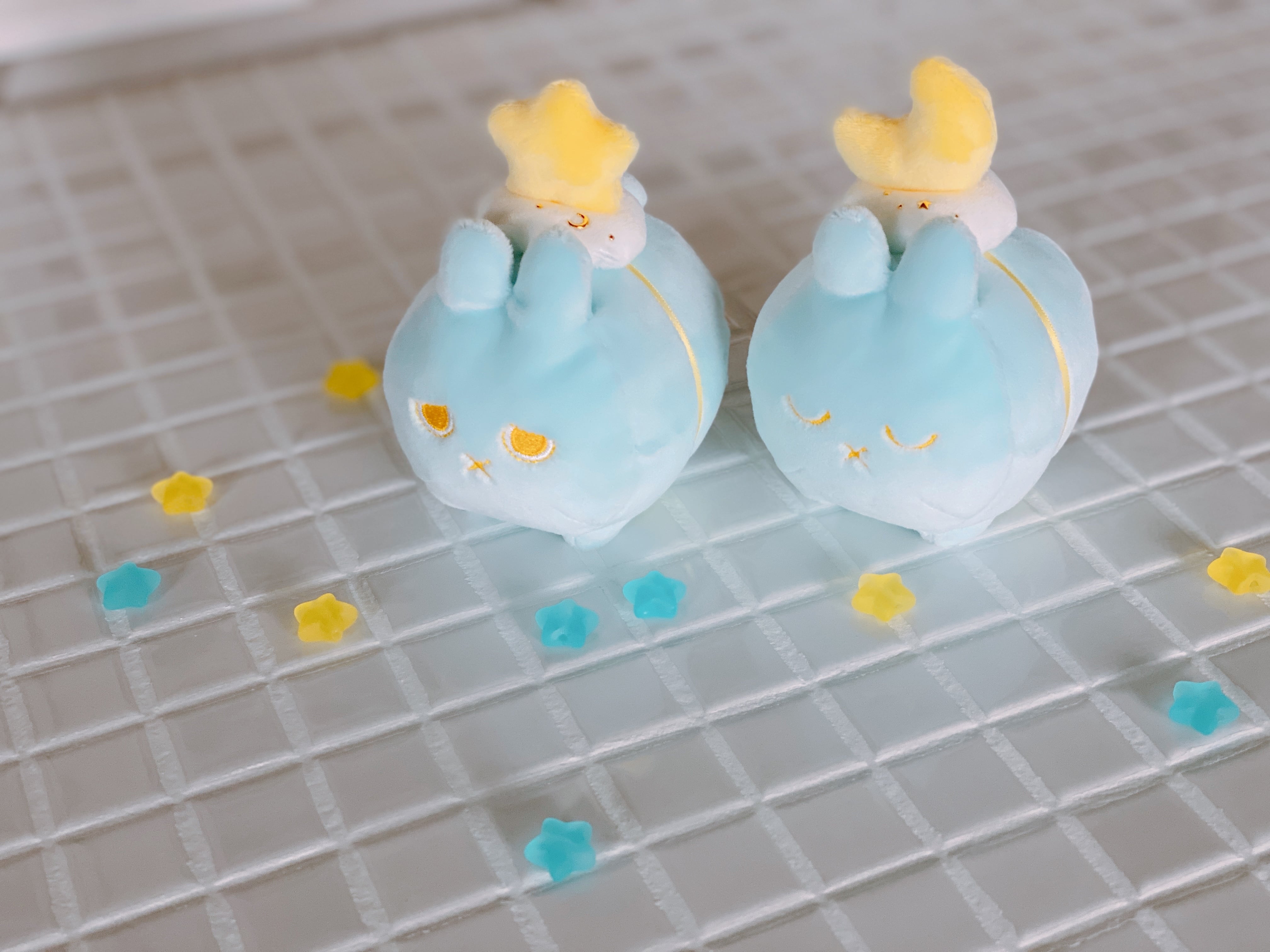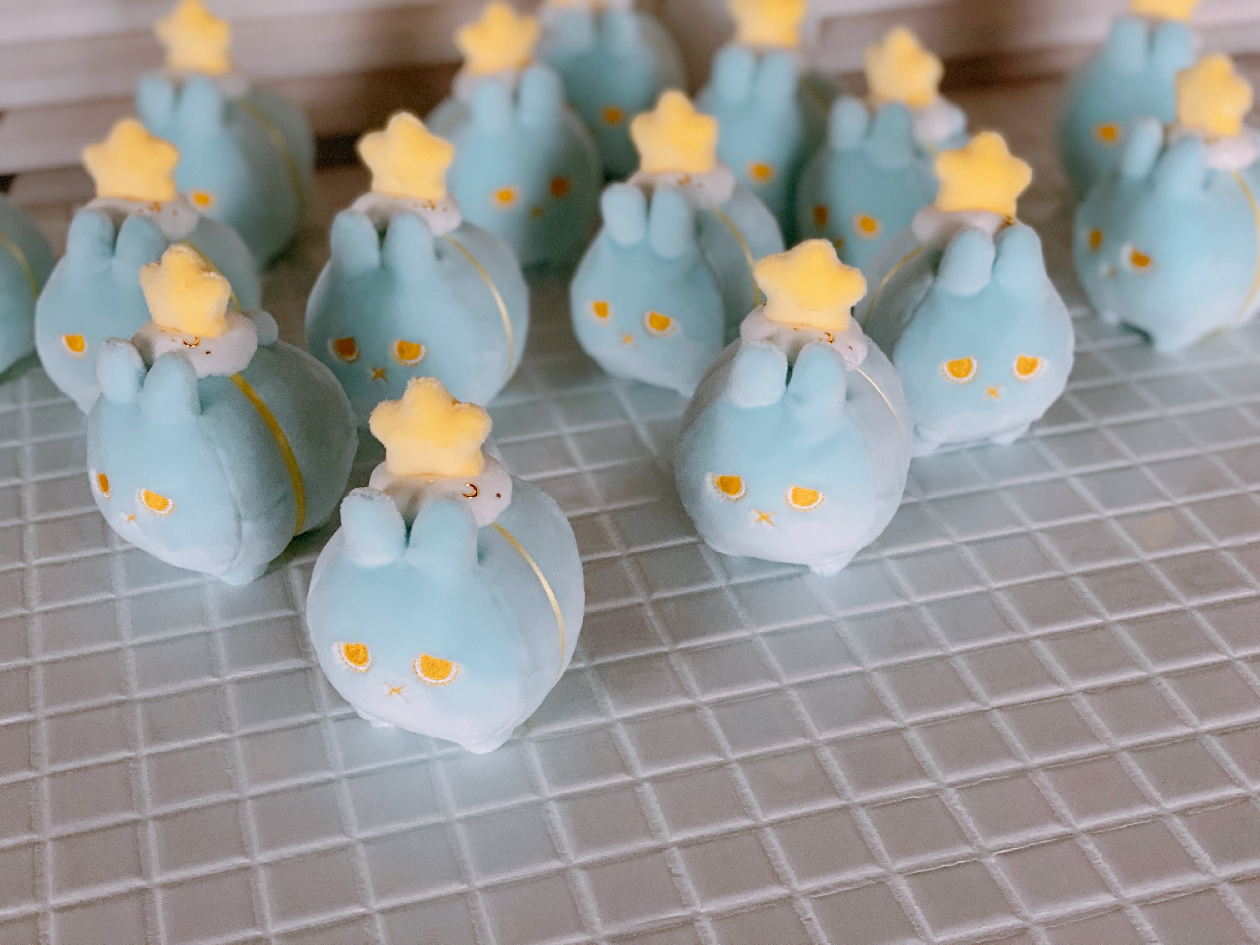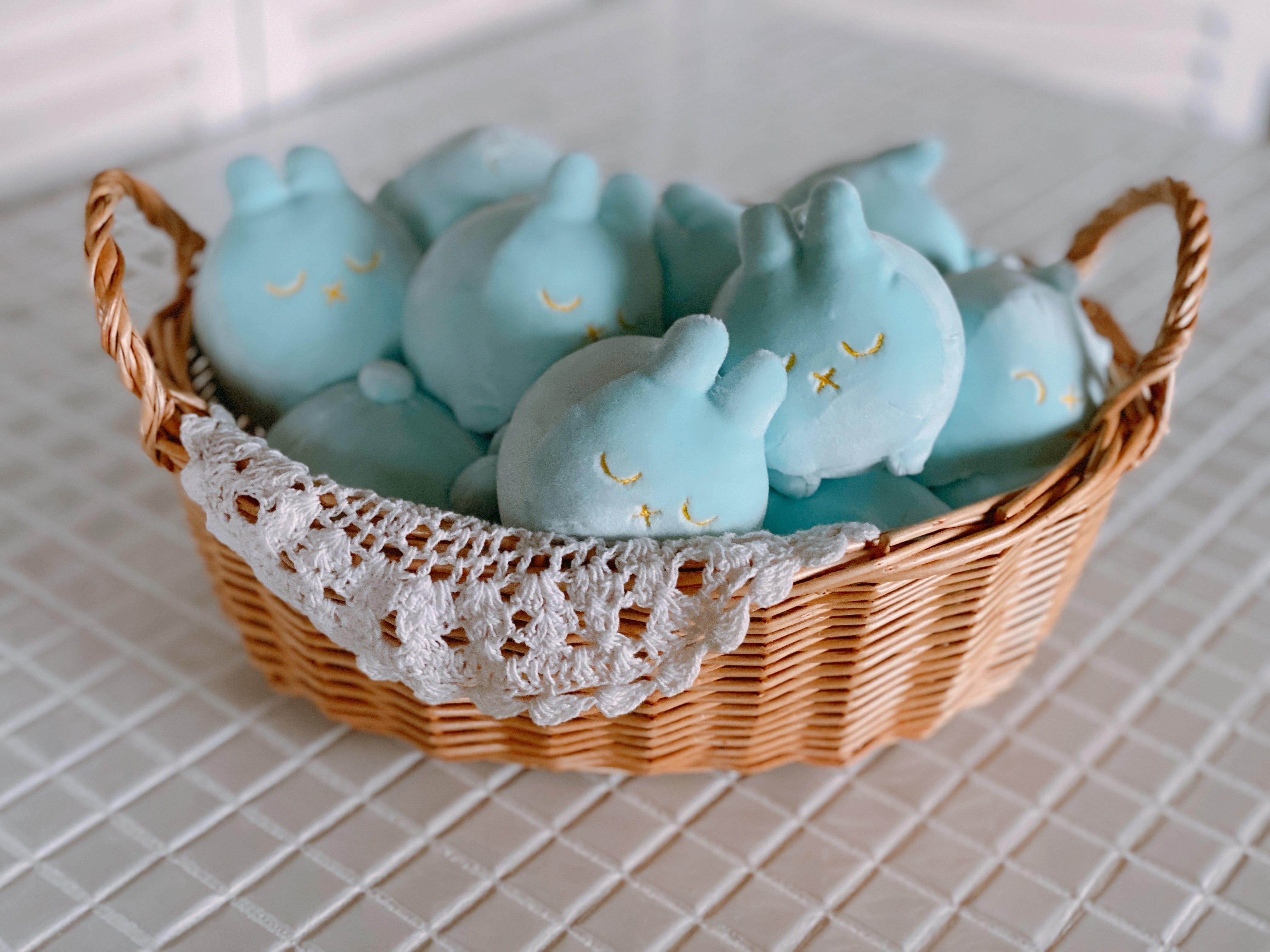 優しい水色の小さいウサギです。